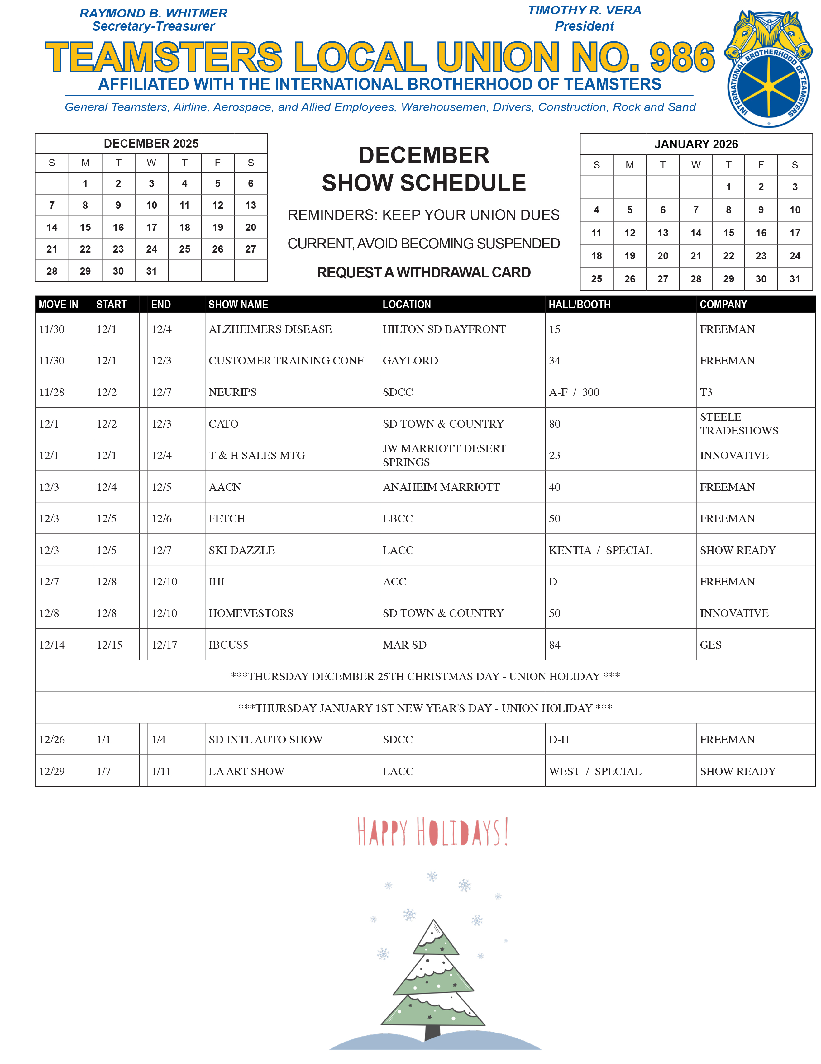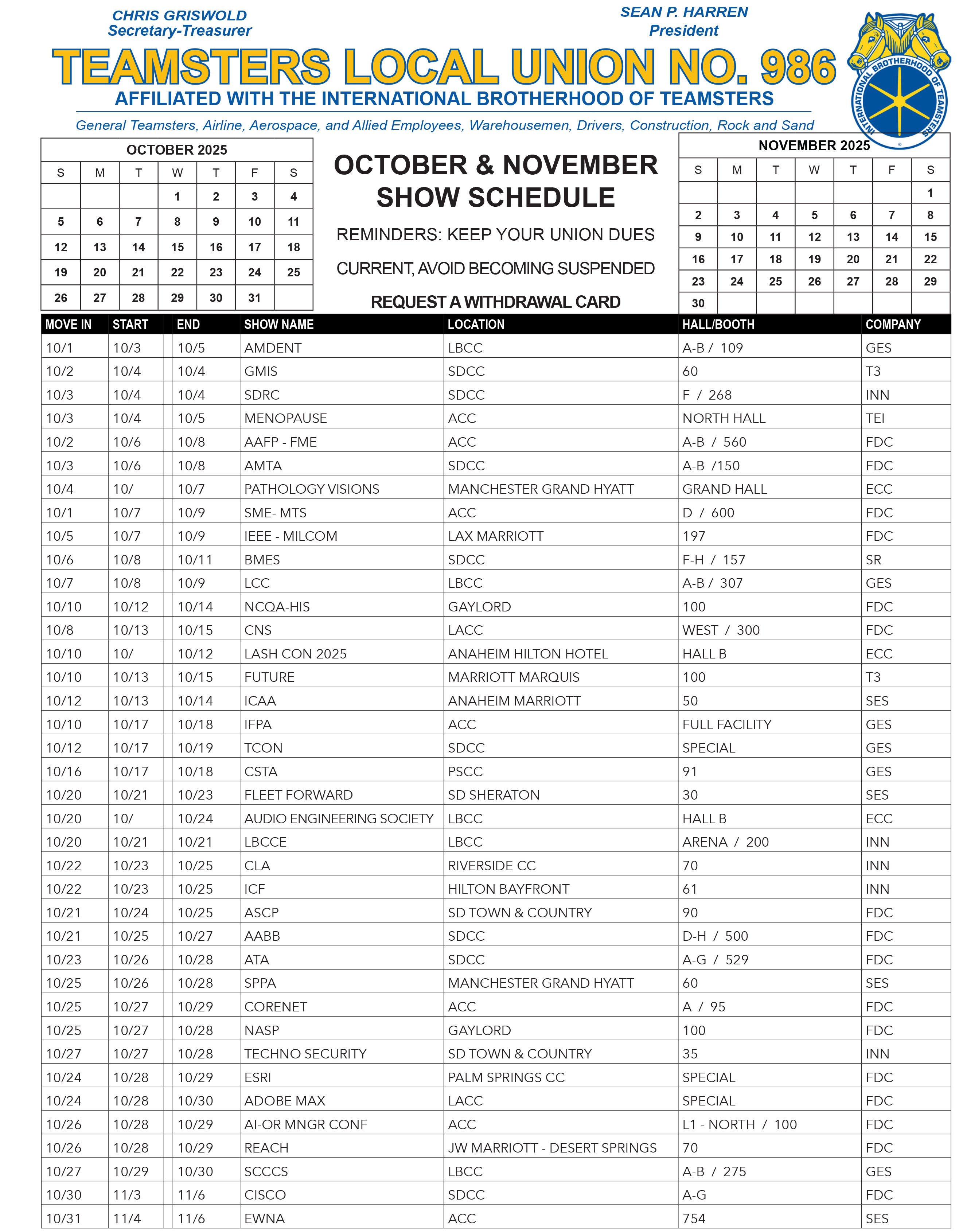 - Reminder: Union dues are due by the 20th of each month. Stay committed and connected!